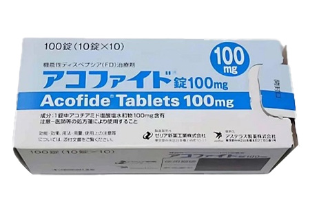 阿考替胺(Acofide)由日本泽利亚公司研发生产,2013年6月6日。在日本率先批准上市,作为世界上首个针对功能性消化不良(FD)的治疗药物。